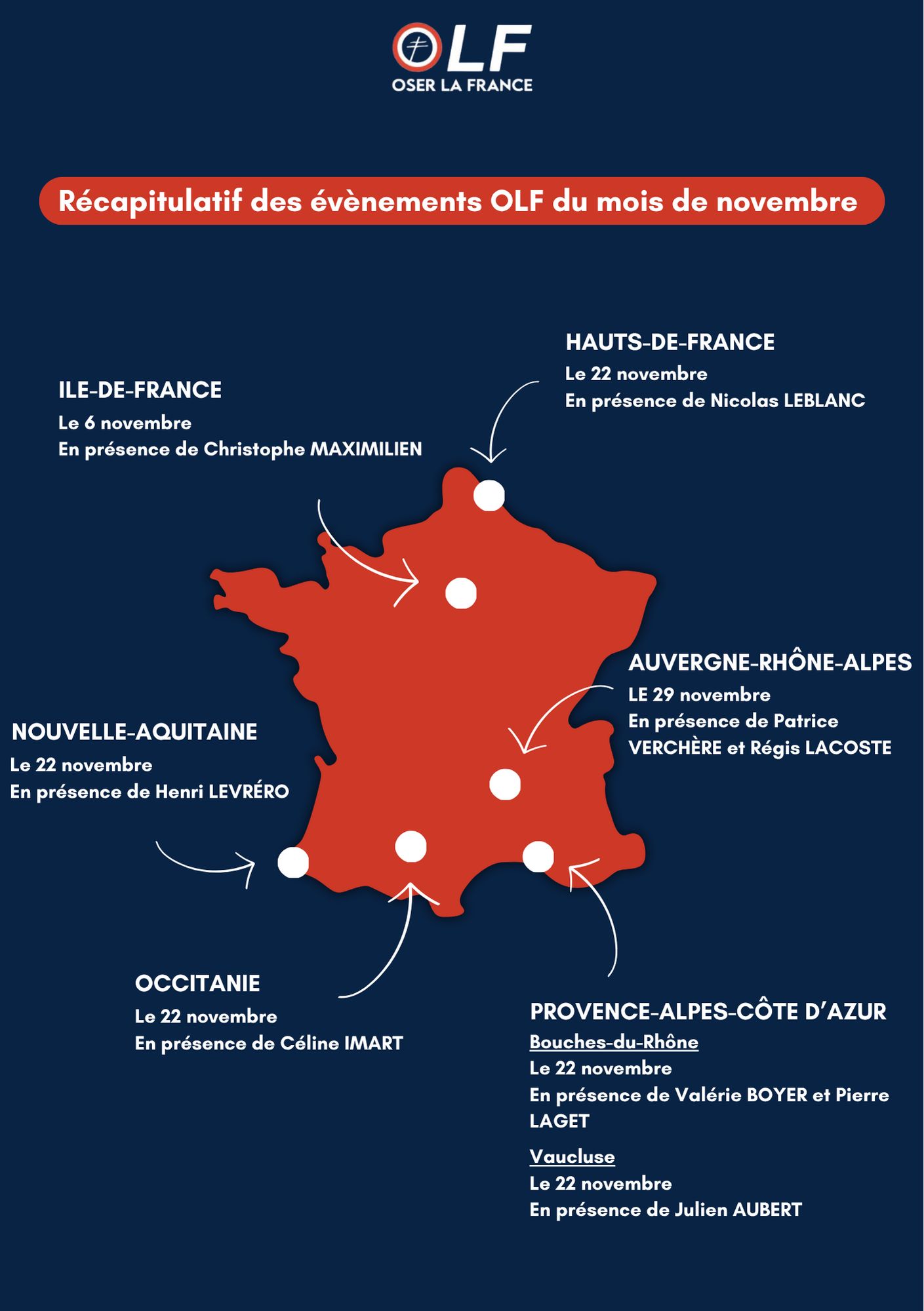Des réunions publiques 🗣️, des conférences 📚, des rencontres locales 🤝 et des moments conviviaux 🍷 seront organisés dans de nombreuses villes, pour faire vivre cet esprit d’audace et de conviction qui nous unit.